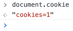 Let’s take a look at our cookies! Open up the console in dev tools, then type document.cookie.